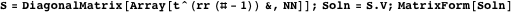 We multiply rows of the solution matrix by various powers of