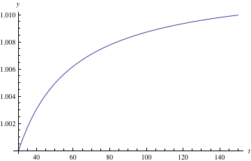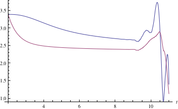 to numerical results of the original equation (via Interpolation). Below we expect our graphs to have horizontal asymptotes; instead, we find the calculations to be unstable for