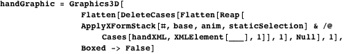 The handXML expression is paraphrased for readability. Please see the “Fingerspelling Sign Language” Demonstration notebook source for the complete expression. Where hierarchy in the XML file is denoted by <tag>…</tag>, hierarchy in the Mathematica