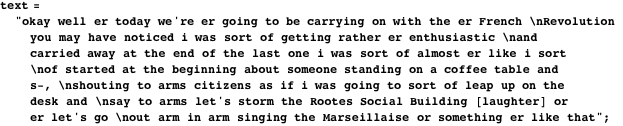 For some computations, you might be tempted to convert a string to a list of characters and then operate on the list using some list manipulation functions. For example, this first constructs a list of the individual characters and then uses Count to get the number of occurrences of the letter B in the list of characters from the text of Charles Darwin’s On the Origin of Species.