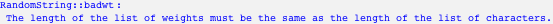 - Generalize the RandomString function to allow for a Weights option so that you can provide a weight for each character in the generated string. Include a rule to generate a message if the number of weights does not match the number of characters. For example: