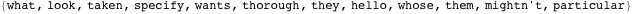 Now, which of these “words” are really words? One way to check is to select those that are in the dictionary. Those elements in words that are not in the dictionary will return