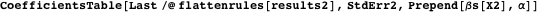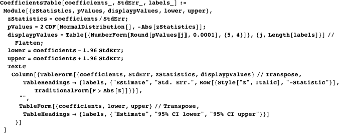 We can now print a table of the results: the estimates of the coefficients, their standard errors, and the Wald