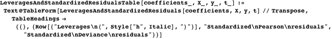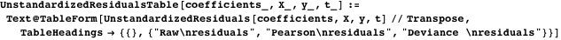 Various types of model fit statistics and residuals are readily computed. We use definitions given in [1]; alternate definitions exist and would require only minor changes.