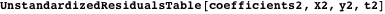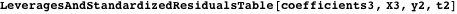, one of which has a high leverage. We also recall that the variable class2 was not significant. Perhaps the model will be improved if we remove class2. All that is required is to remove class2 from the design matrix
