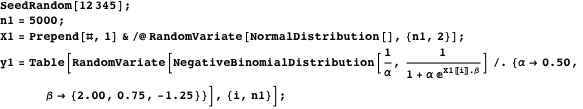 We will use Mathematica to replicate some examples given by Hilbe [1], who uses R and Stata. We start with simulated data generated with known regression coefficients, then recover the coefficients using maximum likelihood estimation. We will generate a sample of