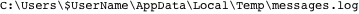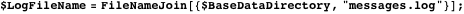 located in the directory given by $TemporaryDirectory. Evaluating $LogFileName shows the fully qualified name of the log file.