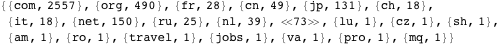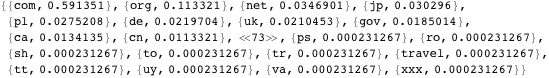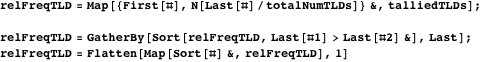 The relative frequency of each TLD is then calculated and the data is sorted—both numerically and alphabetically.