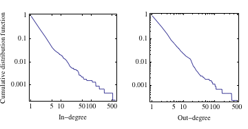 Evidence suggests [4] that the in- and out-degree distributions of the web exhibit power-law behavior. Here, we attempt to reproduce those results using our collected empirical network data. We proceed by defining the in-degree cumulative distribution function (CDF):