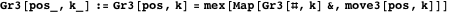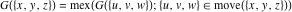 is the upper bound of the number of the rows and columns you can remove. Below the game is the table of Grundy numbers
