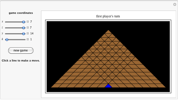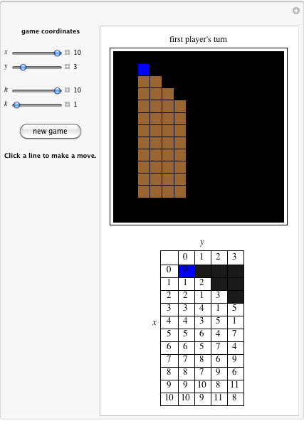 and then click “new game.” Each time you click a line (not a square), you break the chocolate into two pieces along that line and eat the piece without the bitter square [2]. The game coordinates