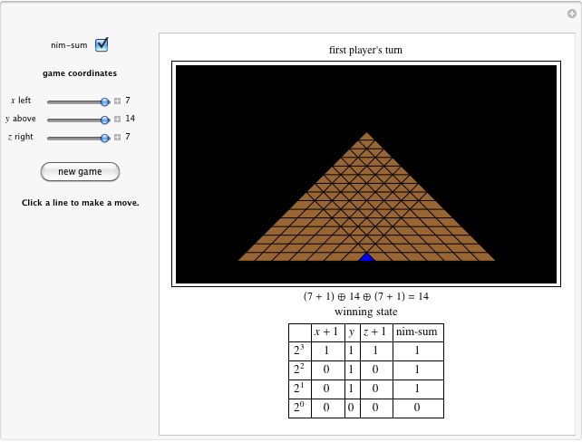 You can use this strategy in chocolate game 1 by selecting “nim-sum.” For each state