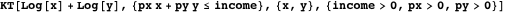 The inputs of KT are the objective function to be maximized, the list of constraints, and the list of choice variables. Here is an example from consumer choice theory: maximize a utility function, subject to a budget constraint.