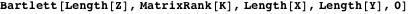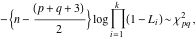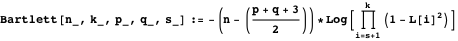 We calculate Bartlett’s statistic (equation (21)) to test if the two sets of variables