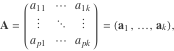 be the concatenation of the matrices