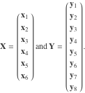 There are 14 random variables (six in the first set and eight in the second); the dimensions of the submatrices are 60×6 for