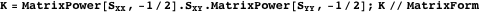 The canonical correlation matrix B is computed using