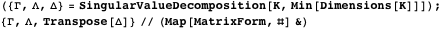 This performs the singular value decomposition on K.