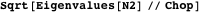 This checks by computing the square root of the eigenvalues of