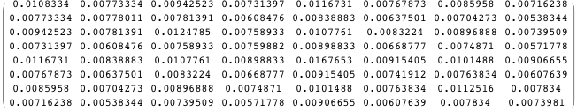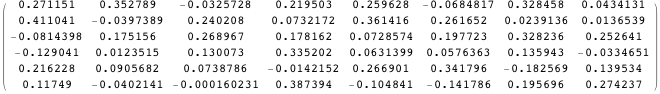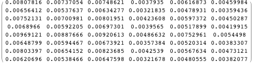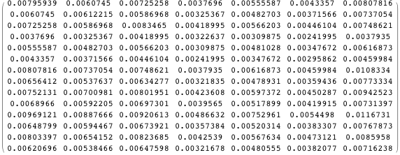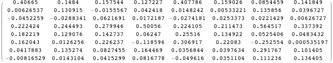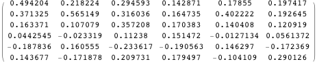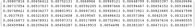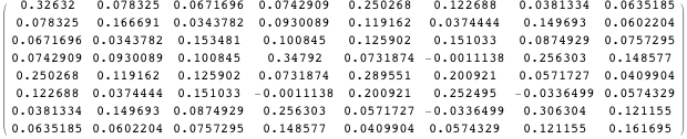 Define M1 to be the variance-covariance matrix of Z. Here are the first seven columns of M1.