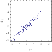 The correlation between the canonical variates can be better interpreted graphically. First we show the reduced matrix computed using the canonical correlation vectors