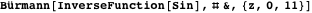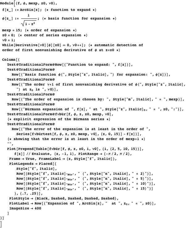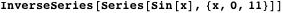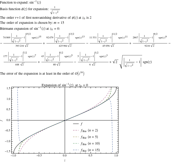 As an example, the inverse of the sine function is expanded, and the result is displayed for order 11.