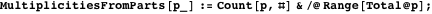 These sets of frequencies for the partitions are tabulated by using the function FrobeniusSolve.