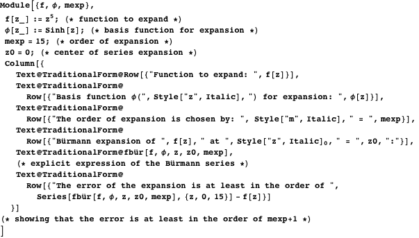 Using the results listed in (10) for the Bürmann coefficients, we arrive at once at the expansion around
