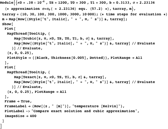 In the next two plots, we show a comparison between the approximation (48) and the exact solution found by applying NDSolve to 1 of (36). The value for