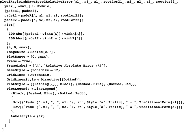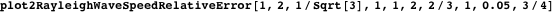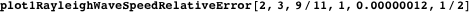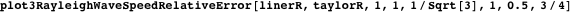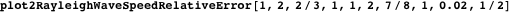 plot1RayleighWaveSpeedRelativeError is a plotting function for the relative absolute error of the Rayleigh speed obtained using a single Padé approximant. The function has similar inputs described earlier.