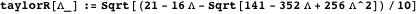 The function taylorR gives the Taylor series expansion in the square of the ratio of Rayleigh wave velocity to the S-wave velocity. (The expansion is not in the ratio alone as in the Liner Taylor series expansion given below.)