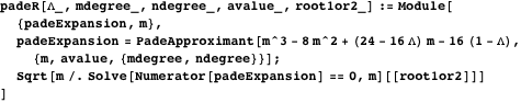 Like the Taylor series expansion, the Padé approximants are expansions about a given value. In the first instance, expansions were obtained around unity, following previous work [3], but after some trial and error, expansions around