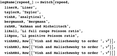 The function legName is for the labels in the legend of some of the plots. rspeed is used to switch to one of the functions defined for the Rayleigh wave speed; they are defined in the body of the article or in the Appendix.