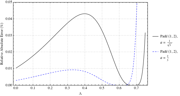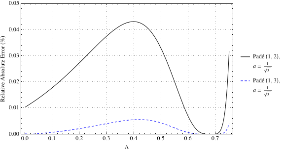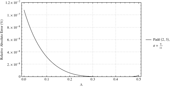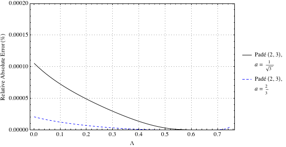 Figures 3 and 4 show the relative absolute errors for solutions based on the Padé approximants