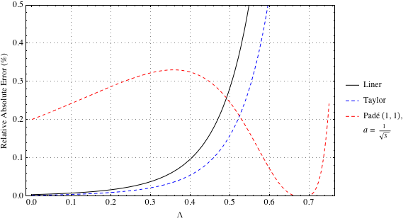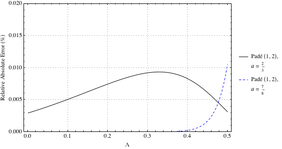 . The question arises, is it possible to expand around another value that will have smaller errors for non-negative Poisson’s ratio? Figure 6 shows the relative absolute error for the Padé type
