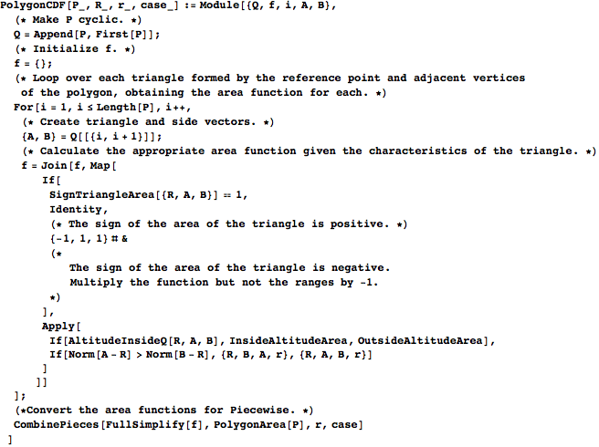 PolygonCDF is the main function used to compute the CDF; it uses the method outlined in Subsection 3.1.