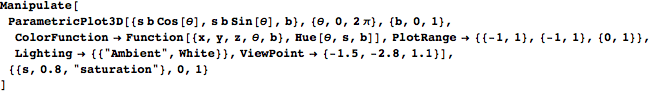 corresponds to zero saturation (purely a gradient of grays), and the external surface of the cone