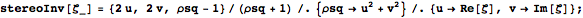 , and this is achieved by stereoInv, the inverse of the stereographic projection.