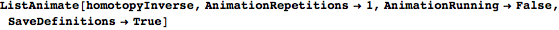 , the geometry of a complex inversion is simply a rotation around the real axis. Note that the simplicity of this homotopy is lost when we try to visualize it purely in the complex plane.