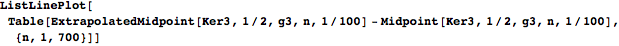 This plots the error in applying the Aitken extrapolation with a step size