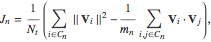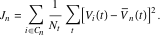 is the mean square deviation of observation j from the mean trace of cluster i.