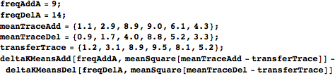 The second is to test several mean photon numbers on the data if the true mean is not known exactly. The test means should be close together in some range around a rough estimate of the true mean; PIKA clusters the data once for each value, returning a new (usually better) estimate of the mean based on each optimized clustering, as well as the value of the objective function associated with each new estimate. (In addition, since the test means are close together so that adjacent distributions should be very similar, the effective photon numbers for the waveforms from one round are used as the initial ordering for the next, instead of the dot product method.)
