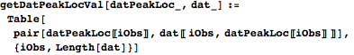 getDatPeakLocVal pairs each of the locations returned by getDatPeakLoc with the value of the corresponding waveform at that point.