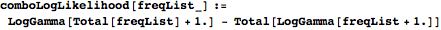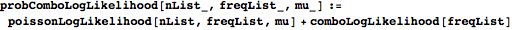 probComboLogLikelihood finds the Poisson/combinatorial log-likelihood term of the objective function.