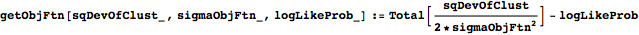 getObjFtn takes a list of each cluster’s square deviation from its mean, the constant