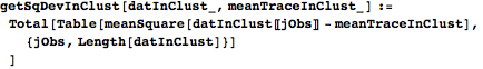 getSqDevInClust takes a list of observations and a mean waveform and totals up the mean square deviations of the observations to the mean. (It returns