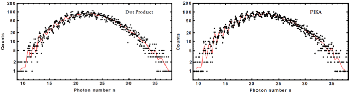Figure 4. Effective photon numbers from the dot product method and from PIKA for