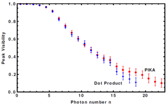 falls, and with it the photon-resolving capability. Figure 5 shows this drop in visibility. The power of PIKA is that it retains nonzero visibility (i.e. the uncertainty does not include 0) through