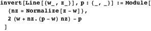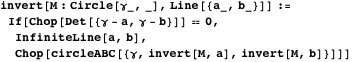 . If the points are collinear, it gives the line through them; if all three points are the same, it returns an error message, as there is no meaningful definition of inversion in a circle of zero radius.