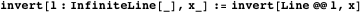 inverts into a brown circle orthogonal to the blue line and to the congruent circles